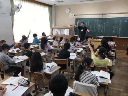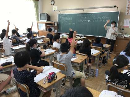 教科分担制の授業で敬語の使い方や公倍数について学習する様子が見られました。