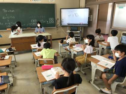 算数の学習のまとめに取り組んだり,捕まえたバッタを嬉しそうに見せてくれたりする姿が見られました。