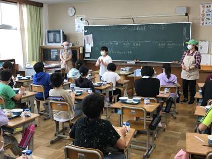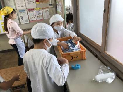 役割に従って準備したり日直の号令で「いただきます」をしたりする姿が見られました。