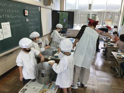 うみのかくれんぼについて学習をしたり,協力して給食準備をしたりする様子がうかがえました。