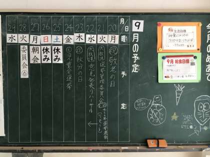 福祉広報委員会の児童が新しい週予定をきちんと記入してくれています。
