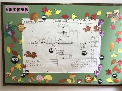 廊下の掲示板に運動会学年種目の紹介がされていました。本番が楽しみです。