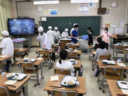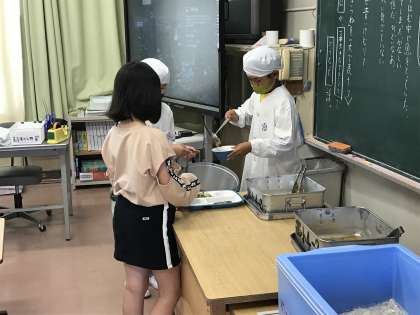 9/22 給食準備の様子(4年生)
