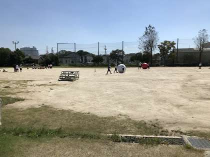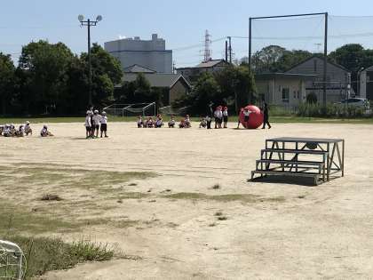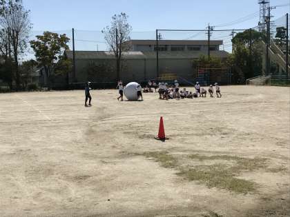 グラウンドで競技の仕方を確認していました。1時間目の並び順確認が功を奏していました。