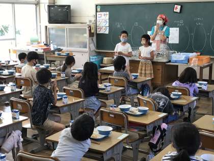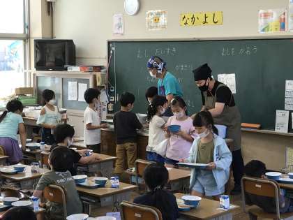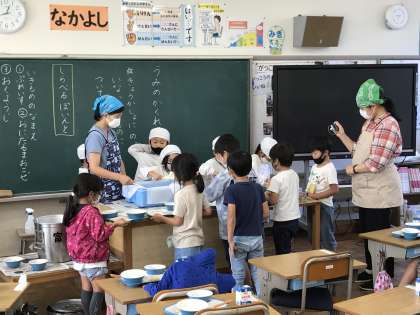 手際よく準備ができていました。日直さんの号令で挨拶をし,黙食がスタートしました。