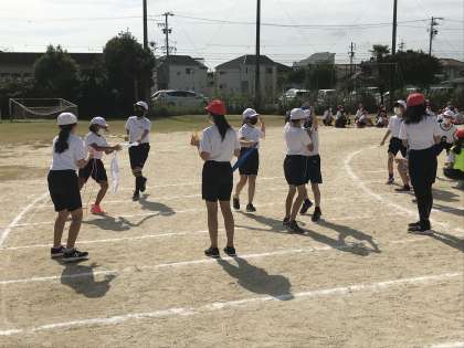 5・6年生合同練習が行われていました。5年生は,学年種目を本番さながらに取り組んでいました。