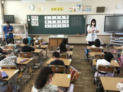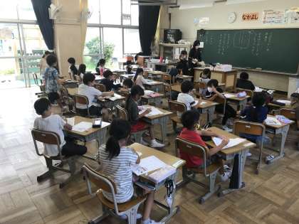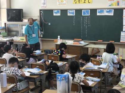 ALTのクリスティーナ先生とコミュニケーションを図ったり,国語のくじらぐもや運動会の目標書きをする姿が見られました。