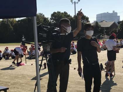 スローガンを掲げ,一人ひとりの一生懸命を誓いしました。また,知多メディアスさんからも取材を受けました。