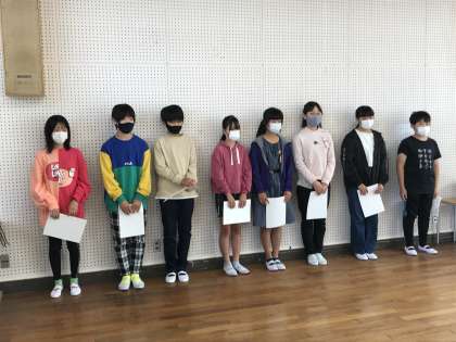 リモート朝会において,後期学級議員及び委員会の委員長の任命式が行われました。これからの活躍に期待しています。