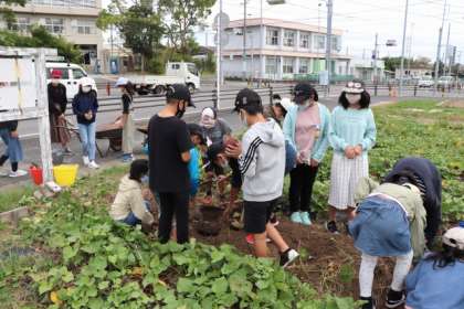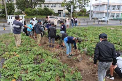 5月に泥だらけになりながら苗を植えたサツマイモをクラス総出で掘りました。大小たくさんのサツマイモを収穫することができました。
