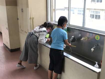 校医さんとも相談し,運動会明けの今日から,歯磨きを再開しました。密にならないように少人数ごとに実施しています。