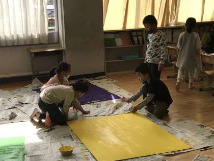学年発表会に向けて,色塗りをして道具の準備をしたり,歌い合わせをしたりする様子が見られました。