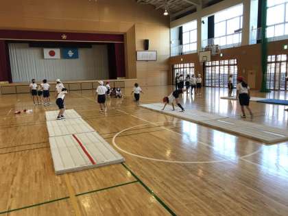 マット運動の練習に励んだり,テストを受けたりする様子が見られました。