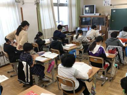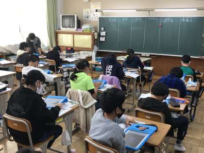 タブレット端末を活用して調べ学習をしたり,教科分担制による社会や国語の学習に取り組んだりする様子が見られました。