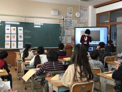 英語専科の平野先生により,外国語の授業が行われていました。映像を見ながら声に出し,How much?について学習していました。