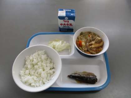 ごはん 牛乳 いわしのうめに にくじゃが たくあん 今日もおいしくいただきました。