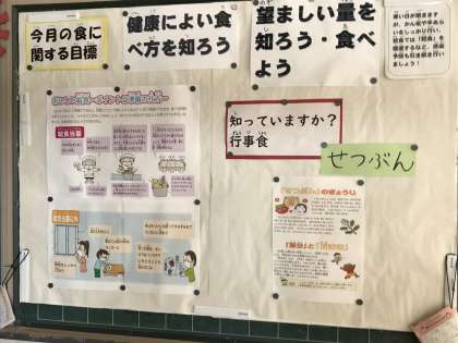 2月になり,食に関する掲示物がリニューアルされました。また,給食クイズも2月1日から新しくなりました。