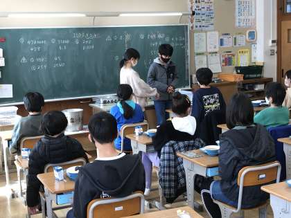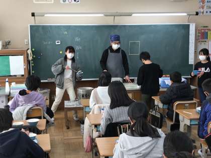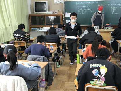日直の号令で黙食スタートです。準備の早いクラスは,すでに黙食が始まっていました。