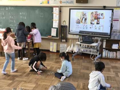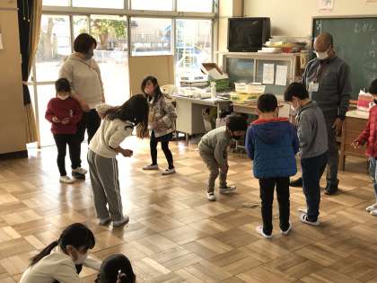 昔の遊びに触れ,楽しく遊ぶ姿が見られました。コロナが収束し,地域の方々と交流できることを待ちわびています。