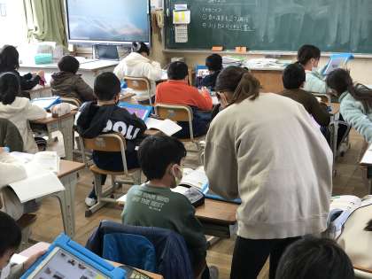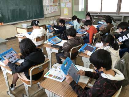 タブレット端末を活用し,昔の道具について調べ学習をする姿が見られました。