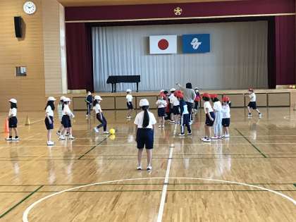 体育館でボールゲーム遊びに取り組んだり,初めてカッターナイフを使って紙を切ったりする姿が見られました。