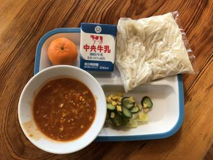 ソフトめん・牛乳・ミートソース・コールスローサラダ・ぽんかん