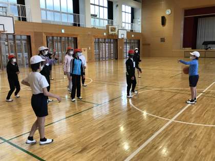 運動が激しくならないように,ハーフコートでのゲームを行う工夫をして取り組んでいました。