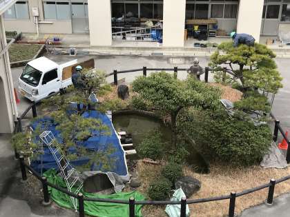 業者の方がによって樹木の剪定が行われ,校舎内の環境が美しく整っていきます。