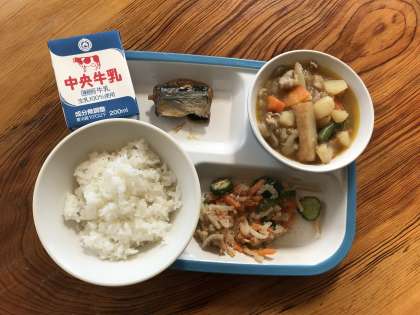 ごはん・牛乳・さんまのみぞれに・じゃがいものうまに・はりはりづけ