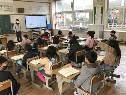 寒い中,ドッジボールを楽しむ姿や国語の意見交流する姿が見られました。また,6年生を送る会に向けて,クラスごとに練習する様子も見られました。