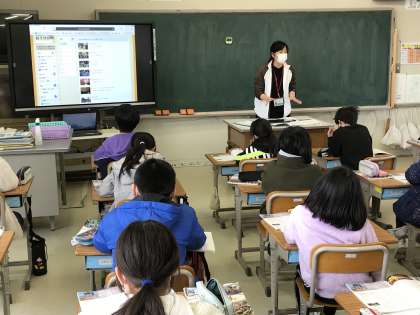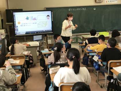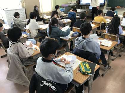 面や辺の平行と垂直の学習や犬山市について学習する様子です。