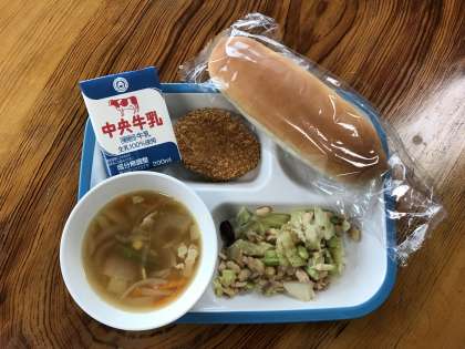 ミルクロールパン・牛乳・こめこコロッケ・まめまめサラダ(イタリアンドレッシング)・やさいスープ