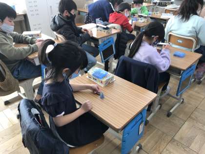磁石を使って,フィギュアを回転させて喜ぶ様子が見られました。