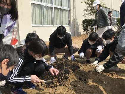 PTAの方々にもご参加いただき,卒業記念植樹を行いました。