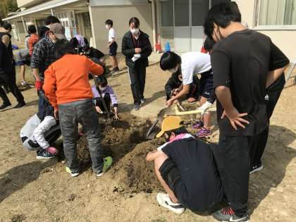 未来につながる植樹を通して,子どもたちのこころを磨く取組となりました。