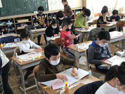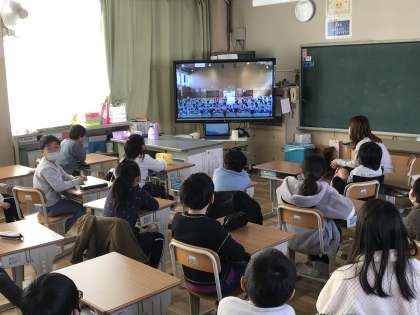図工の作品作りや送る会の動画を視聴する様子です。また,グラウンドでは,サッカーに取り組む様子が見られました。