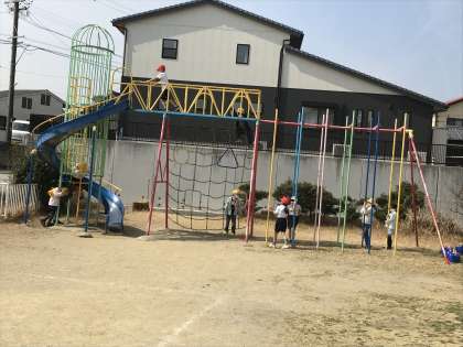 今日は暑いくらいの陽気です。元気に遊ぶ子どもたちの様子です。