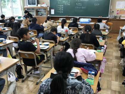 前向き黙食を継続実施中です。子どもたちは,本当によく我慢しています。