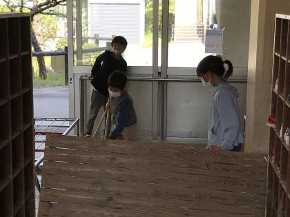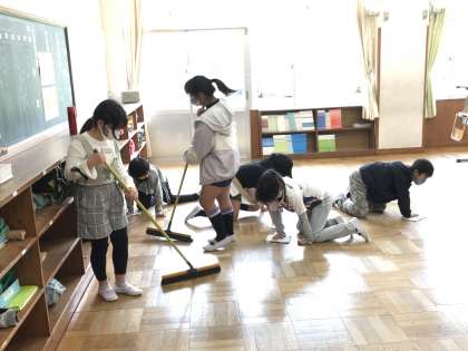 役割分担に従って,丁寧に清掃に取り組む様子です。