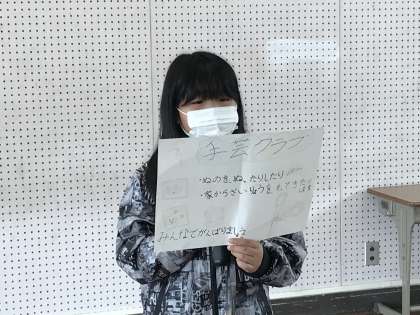 イラスト・図工クラブ,手芸クラブ,料理クラブからの紹介の様子です。