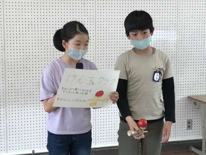 ボードゲームクラブ,ダンスクラブ,けん玉クラブからの紹介の様子です。