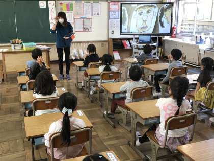 ひらがなの言葉集めや作品鑑賞する様子です。
