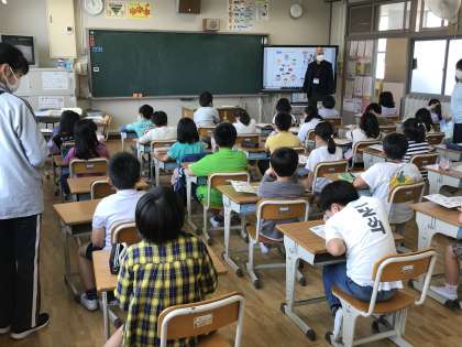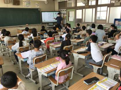 漢字の学習や外国語活動に取り組む様子です。ALTのリチャード先生と楽しくコミュニケーションを図る姿が印象的でした。