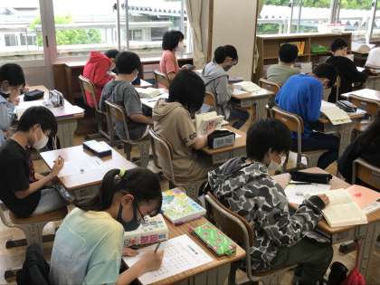 修学旅行の調べ学習,情報アドバザーによるPC学習,辞書を活用した国語の学習に取り組む様子です。