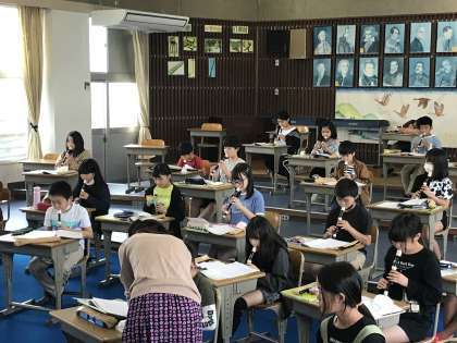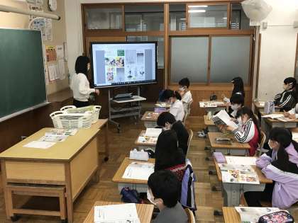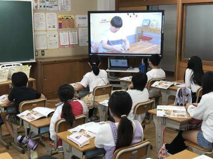 VTRを見て,図工の作品作りをイメージしたり,リコーダーの練習に取り組んだりする様子です。