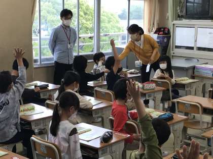 ALTのクリスティーナ先生とコミュニケーションを楽しむ姿が見られました。