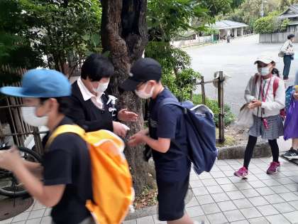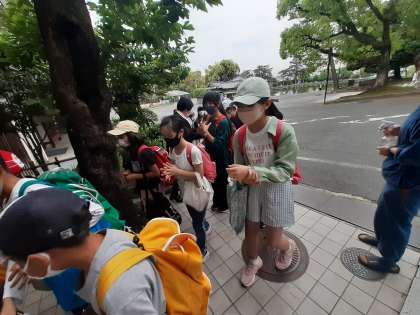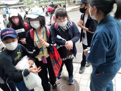 感染症対策のため,きちんと手指消毒をしてから入館する様子です。