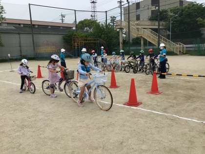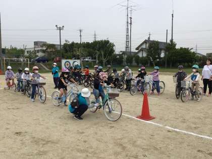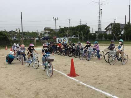 自転車訓練を行いました。交通指導員さんから,交通ルールを学びました。安全に自転車に乗れるようになるといいですね!!