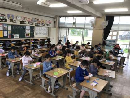 生活科であさがおの観察をしたり,図工でちょきちょきかざりを作ったりしました。