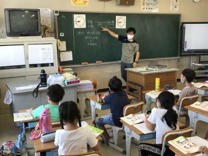 担任による算数の学習や教科分担制による社会科の学習に取り組む様子です。